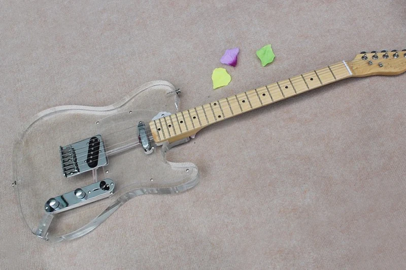 Wholesale factory 6 strings Acrylic body electric guitar with chrome hardware,acrylic pickguard,maple neck,can be changed