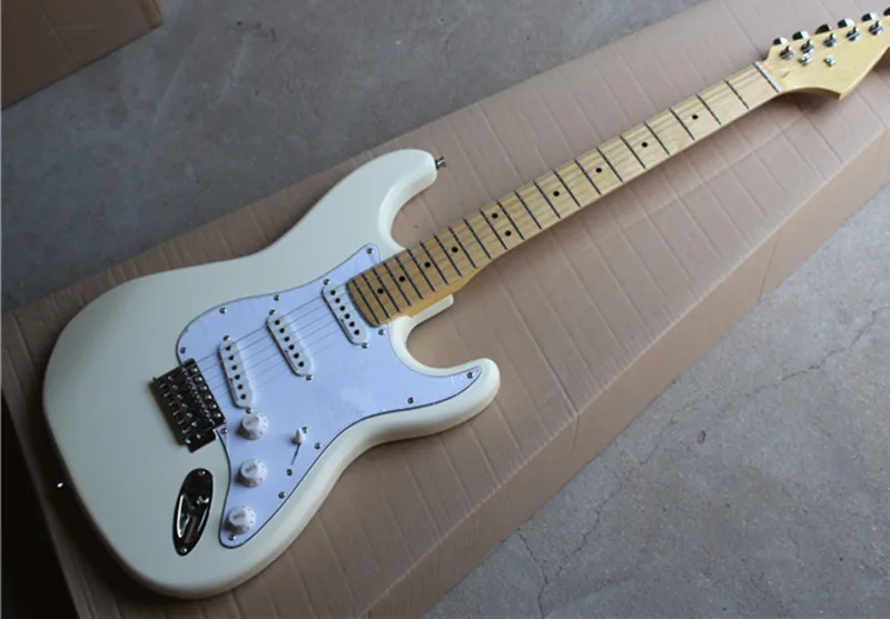 Factory custom milk-white body electric guitar with SSS pickups,white pickguard,chrome hardware,can be customized